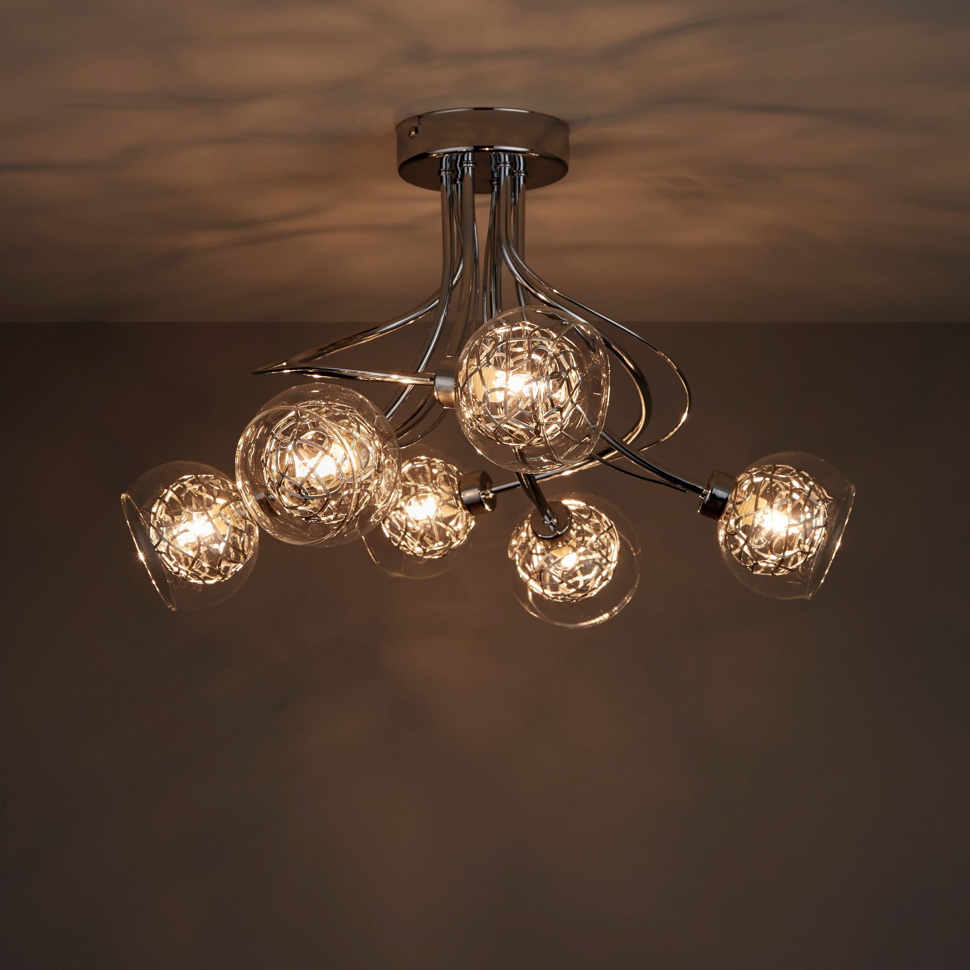Freya crystal sphere nickel effect ceiling pendant lights diy this 6 lamp light is part of lopez circle chrome 5 jonas wire copper semi flush bora pineapple antique brass.
